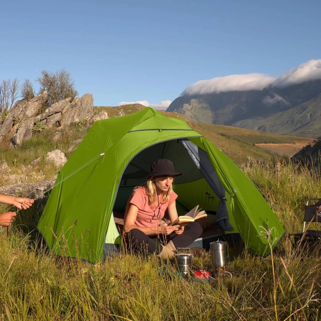 A porta frontal única amplia o espaço interno e cria um vestíbulo de 85 cm, ideal para uso como área de cozinha ou abrigo extra em dias frios e com vento. Apesar do peso reduzido, a barraca garante excelente durabilidade e impermeabilidade, graças à confecção em Poliéster 210T com revestimento em PU, que resiste a 3.000 mm de coluna d’água no sobreteto e no piso de Oxford 150D — ambos com costuras seladas eletronicamente.